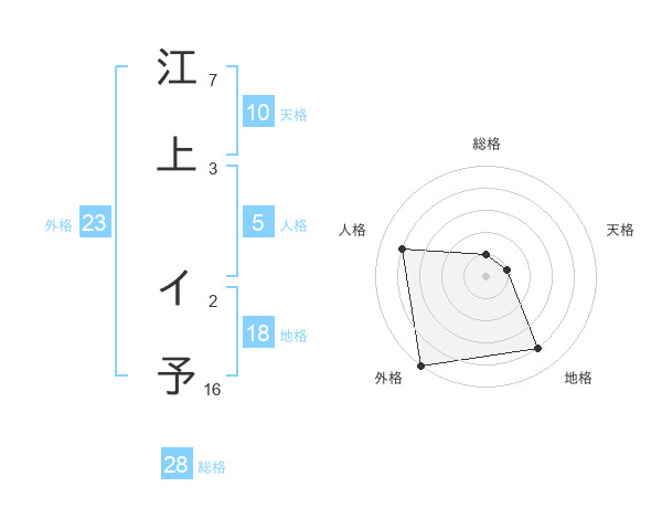 江上 イ予さんの外格は23画の5点!