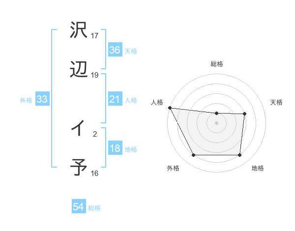 沢辺 イ予さんを姓名の画数から五運を鑑定
