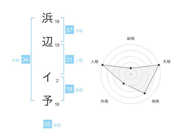 浜辺 イ予さんを姓名の画数から五運を鑑定