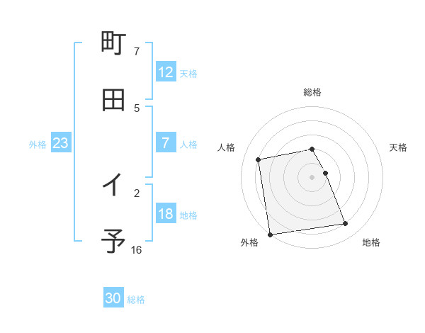 町田 イ予さんの総格は30画の2点!