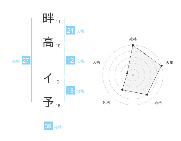 畔高 イ予さんを姓名の画数から五運を鑑定