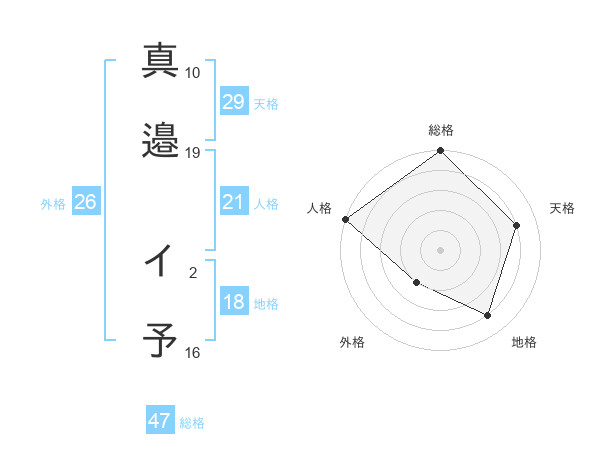 真邉 イ予さんを姓名の画数から五運を鑑定