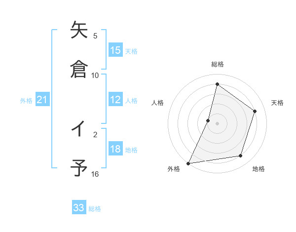 矢倉 イ予さんの外格は21画の5点!