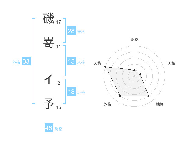 磯嵜 イ予さんの人格は13画の5点!
