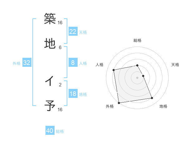 築地 イ予さんの外格は32画の5点!