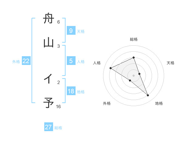 舟山 イ予さんの外格は22画の1点!