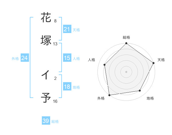 花塚 イ予さんを姓名の画数から五運を鑑定