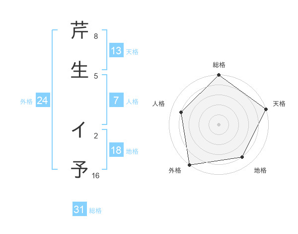 芹生 イ予さんの天格は13画の5点!