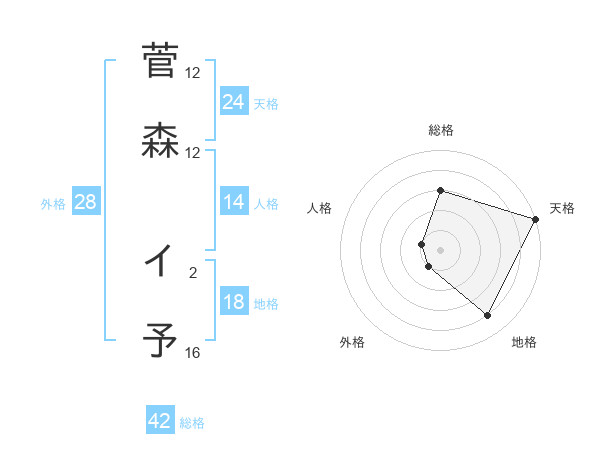 菅森 イ予さんを姓名の画数から五運を鑑定