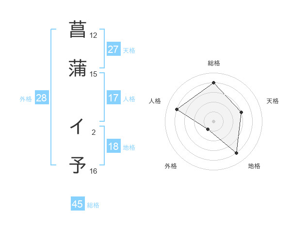 菖蒲 イ予さんの総格は45画の4点!