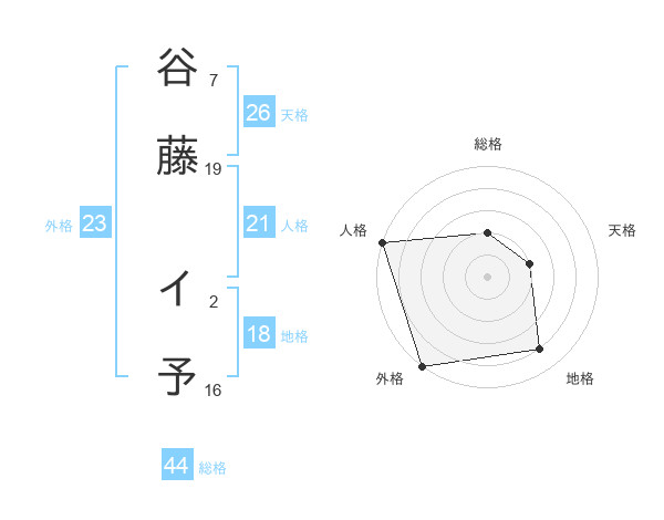 谷藤 イ予さんを姓名の画数から五運を鑑定