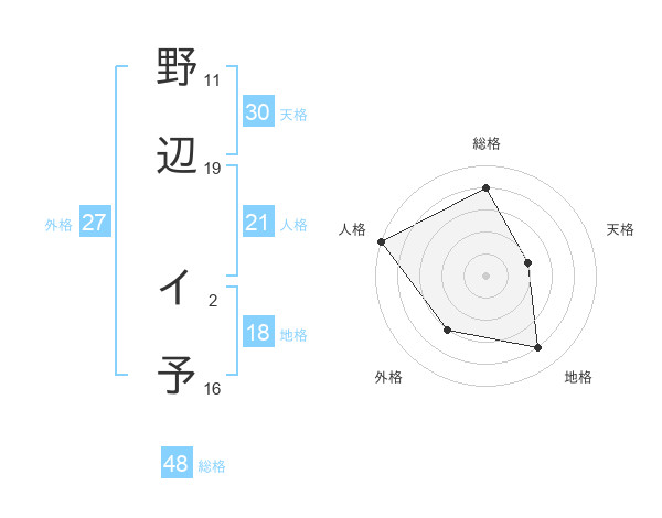 野辺 イ予さんを姓名の画数から五運を鑑定