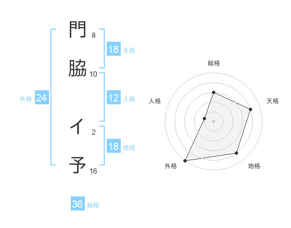 門脇 イ予さんの外格は24画の5点!