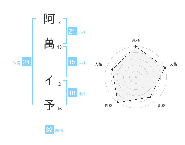 阿萬 イ予さんを姓名の画数から五運を鑑定