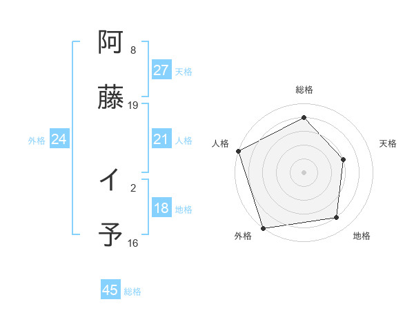 阿藤 イ予さんを姓名の画数から五運を鑑定
