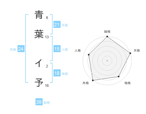 青葉 イ予さんを姓名の画数から五運を鑑定