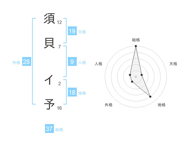 須貝 イ予さんを姓名の画数から五運を鑑定