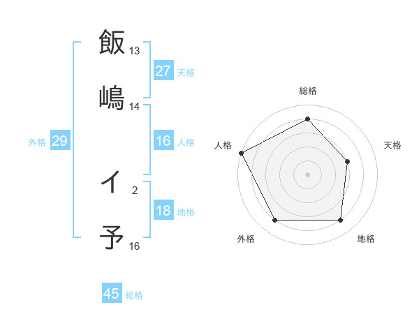 飯嶋 イ予さんの総格は45画の4点!