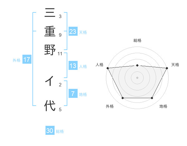 三重野 イ代さんの天格は23画の5点!