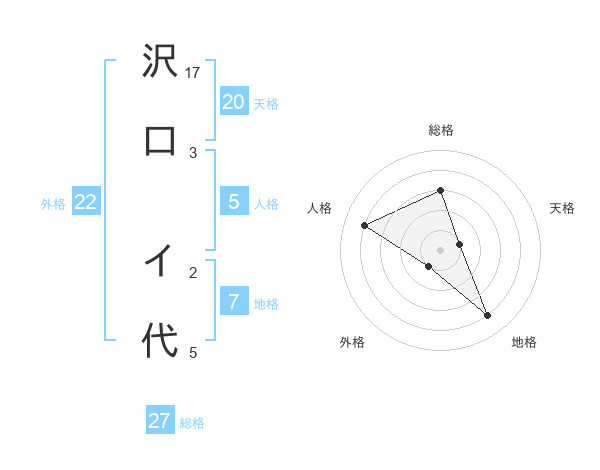 沢口 イ代さんを姓名の画数から五運を鑑定