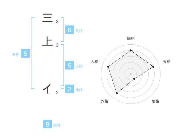 三上 イさんの総格は8画の4点!