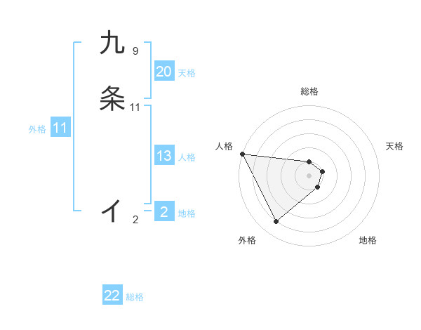 九条 イさんの総格は22画の1点!