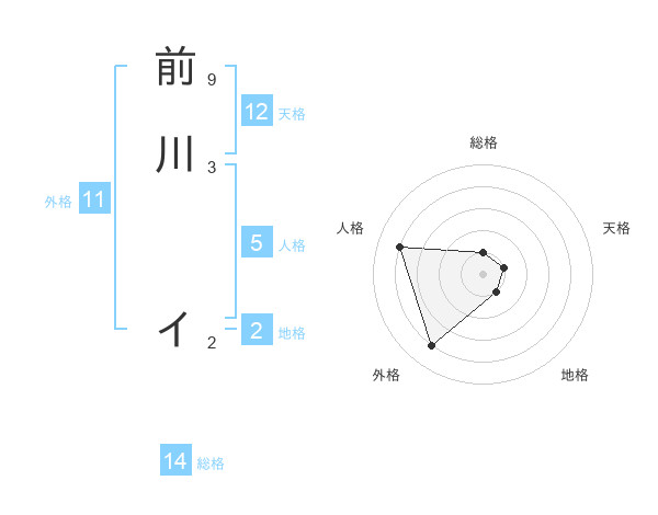 前川 イさんの総格は14画の1点!