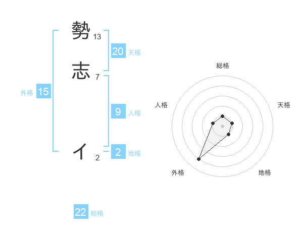 勢志 イさんの総格は22画の1点!