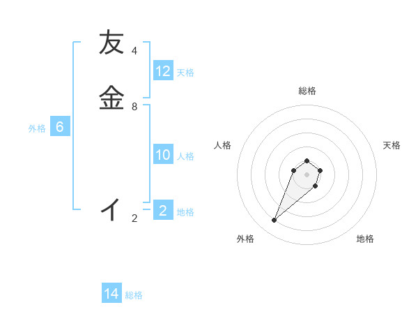 友金 イさんの総格は14画の1点!