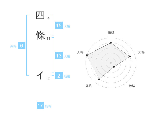 四條 イさんの総格は17画の4点!