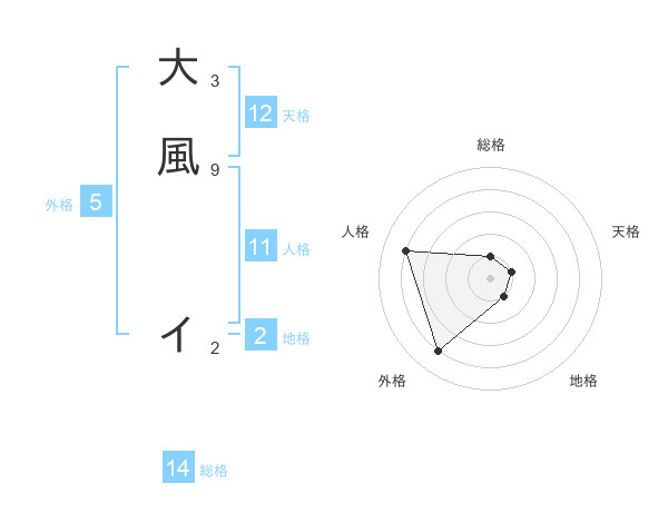 大風 イさんの総格は14画の1点!
