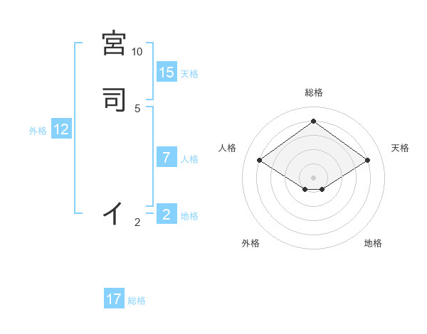 宮司 イさんの総格は17画の4点!