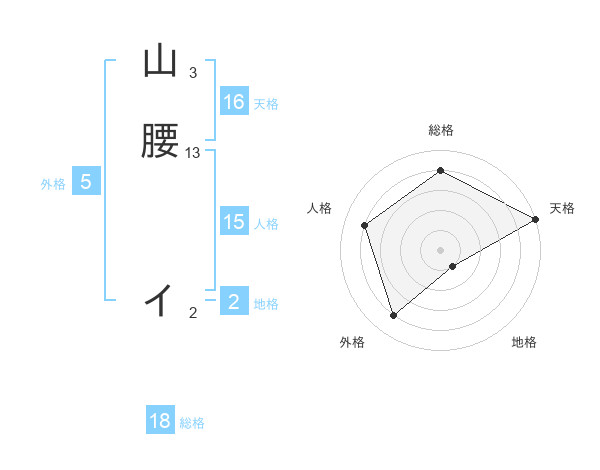 山腰 イさんの天格は16画の5点!