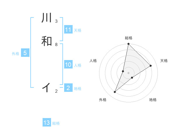 川和 イさんの総格は13画の5点!