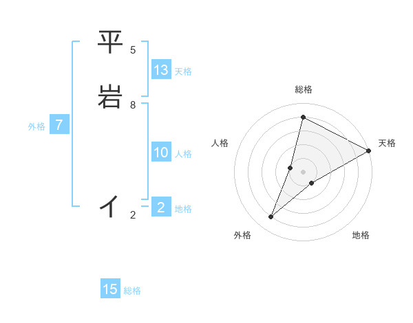 平岩 イさんの天格は13画の5点!