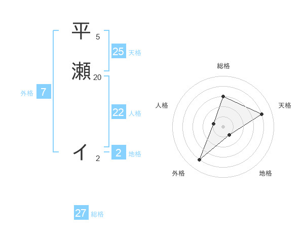 平瀬 イさんの総格は27画の3点!