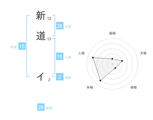 新道 イさんの外格は15画の4点!