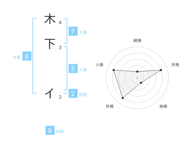木下 イさんの天格は7画の4点!
