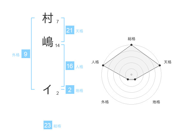 村嶋 イさんの天格は21画の5点!