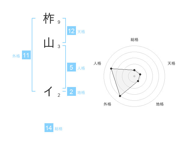 柞山 イさんの総格は14画の1点!