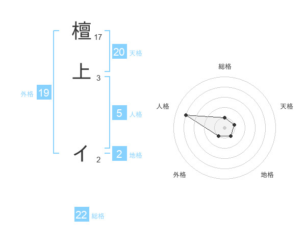 檀上 イさんの総格は22画の1点!