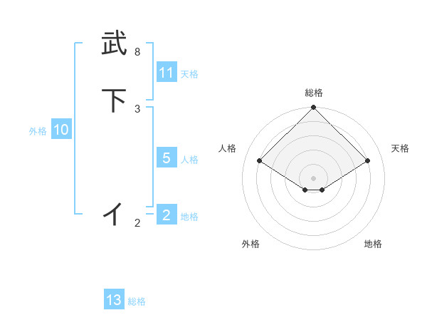 武下 イさんの総格は13画の5点!