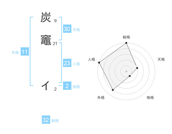 炭竈 イさんの総格は32画の5点!