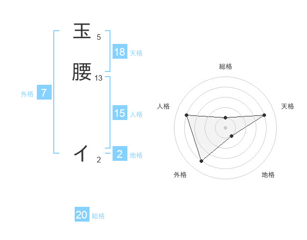 玉腰 イさんの総格は20画の1点!
