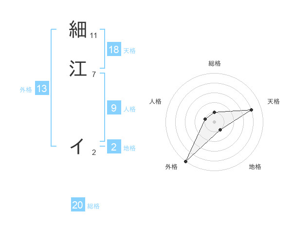 細江 イさんの総格は20画の1点!