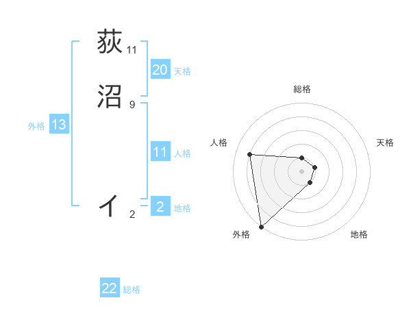 荻沼 イさんの外格は13画の5点!