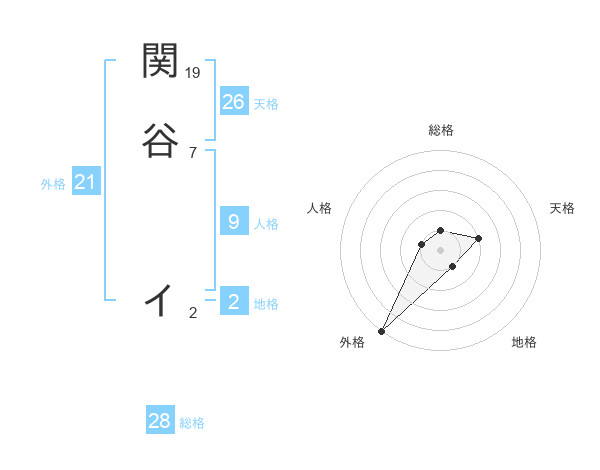 関谷 イさんの外格は21画の5点!