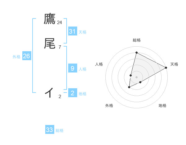 鷹尾 イさんの総格は33画の4点!