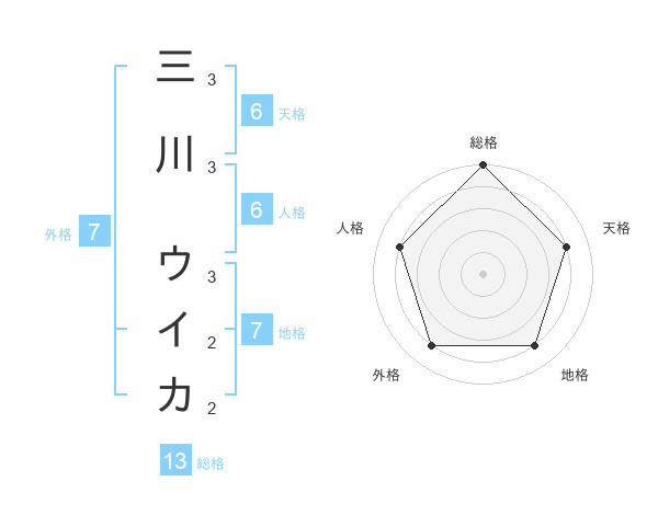 三川 ウイカさんの総格は13画の5点!