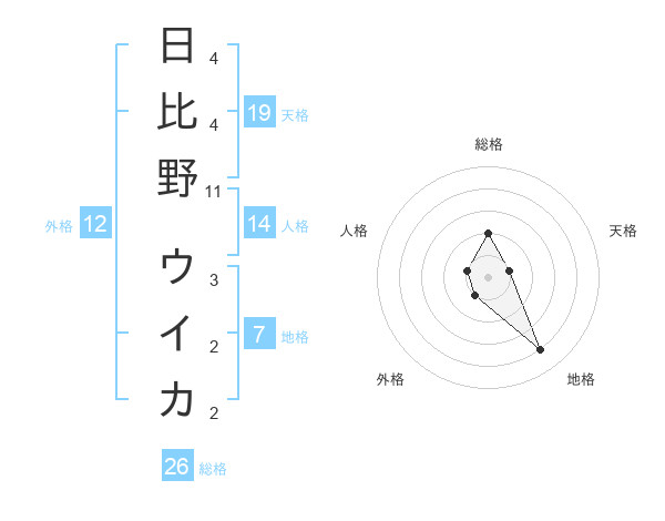 日比野 ウイカさんの外格は12画の1点!